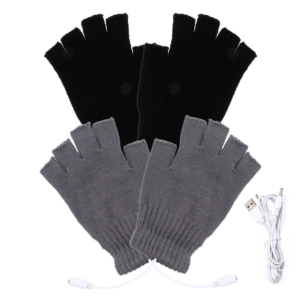2 Pairs USB Heated Gloves Woolen Winter Thermal Heated Half Finger Gloves